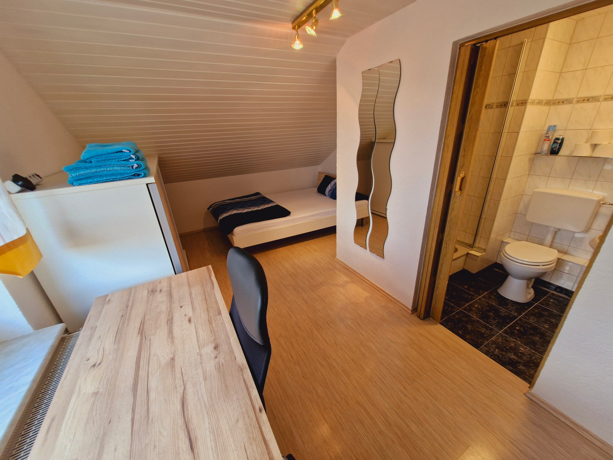 Zimmer 4 verfügt über ein großes Einezelbett mit PC Arbeitsplatz LAN und W-LAN vorhanden.